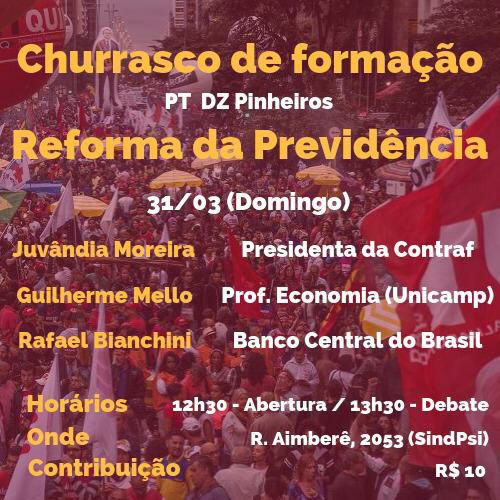 Apresentação sobre a necessidade da reforma da previdência e a EC 06/19 (Bolsonaro/ Paulo Guedes) realizada em 31.03.2019 em evento do DZ Pinheiros do PT, 9 e 10.04.2019 na Uninove